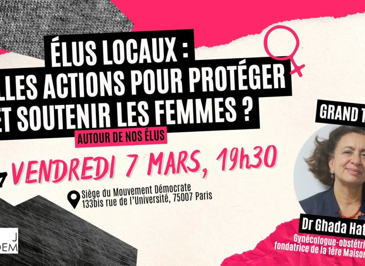 Vendredi 7 mars, veille du 8 mars, le Mouvement Démocrate a invité Ghada Hatem, gynécologue-obstétricienne, fondatrice de la première Maison des femmes, pour une soirée-débat sur les actions à mener au niveau local, animée par les JDems Louise Daniel et Jules Pasquier. Retrouvez la rediffusion de cette soirée exceptionnelle.